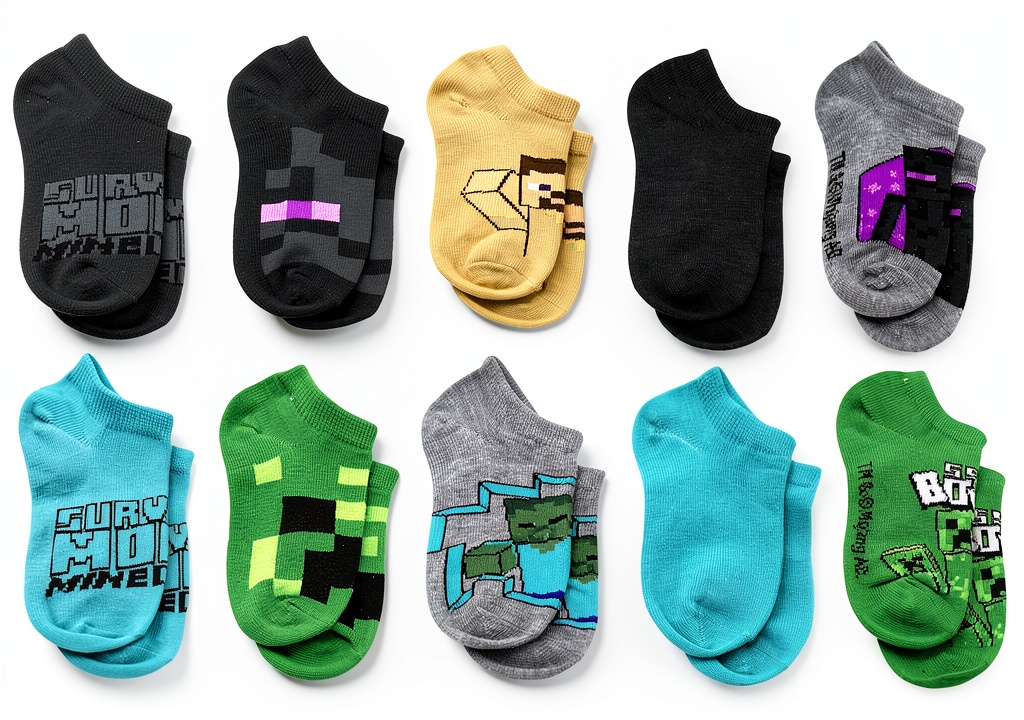 Our Minecraft socks stand out due to their focus on quality and user satisfaction. With a 5.0 out of 5 stars rating from 12 customer reviews, they are trusted for their reliable fit and vibrant designs. The reinforced construction prevents wear in high-stress areas, extending the socks’ lifespan, while the ribbed cuffs offer a secure fit that doesn’t slip. We prioritize materials that are gentle on skin and easy to maintain, backed by a product warranty for customer assurance. This combination of fun, functionality, and durability makes them a top choice in the boys’ sock category.